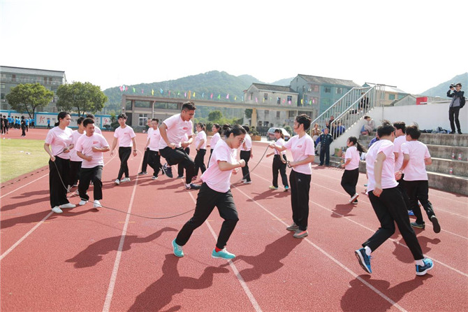 “集體跳繩”,比賽每隊20人參加,兩人搖繩,剩下18人依次跳過繩子。比賽過程中有人絆到繩子,有的隊伍沉穩應對,有的隊伍則亂了分寸,接連幾次絆到繩子。最終行政中心隊以3分鐘內跳了235個獲得“集體跳繩”單項比賽第一名。