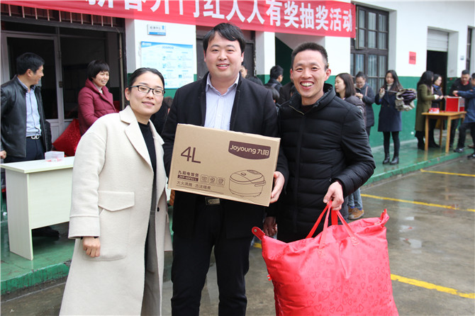 華寶公司為了迎接和感謝2017年的辛勤付出及時返崗的員工,在董事長胡仁寶先生的親自帶領(lǐng)下,公司為員工準(zhǔn)備了豐厚的獎品:大到洗衣機、掃地機、電飯煲小到被子、背包、四件套、開水煲、電吹風(fēng)、雨傘、保溫杯等等只要到場人人有獎。