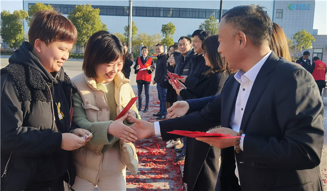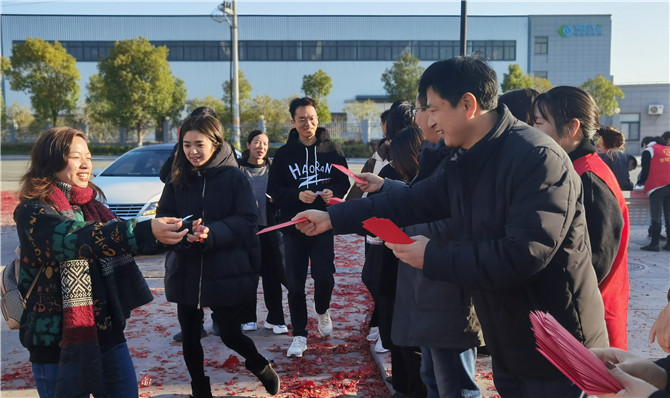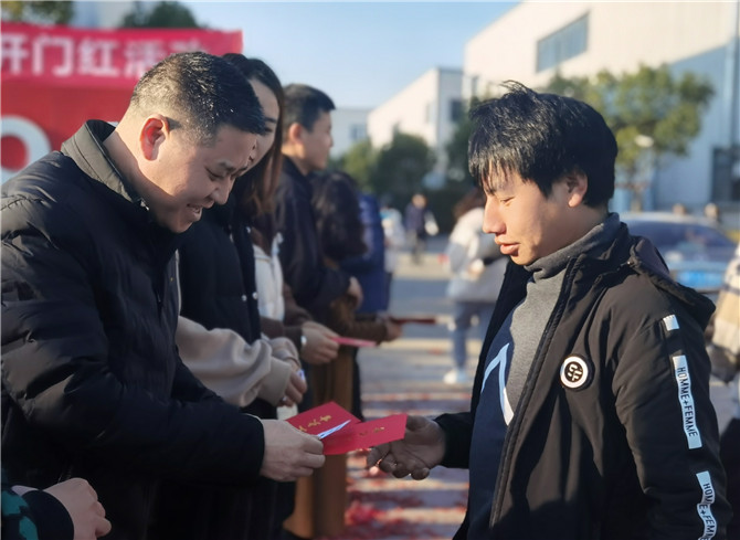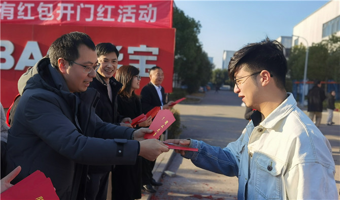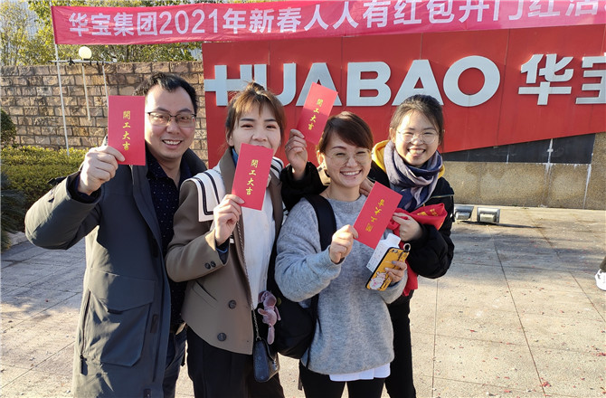 華寶集團為了迎接和感謝2020年的辛勤付出及時返崗的家人們,開工當天,公司中高層領導在公司大門口為所有按時返崗的家人們準備了開門紅包。